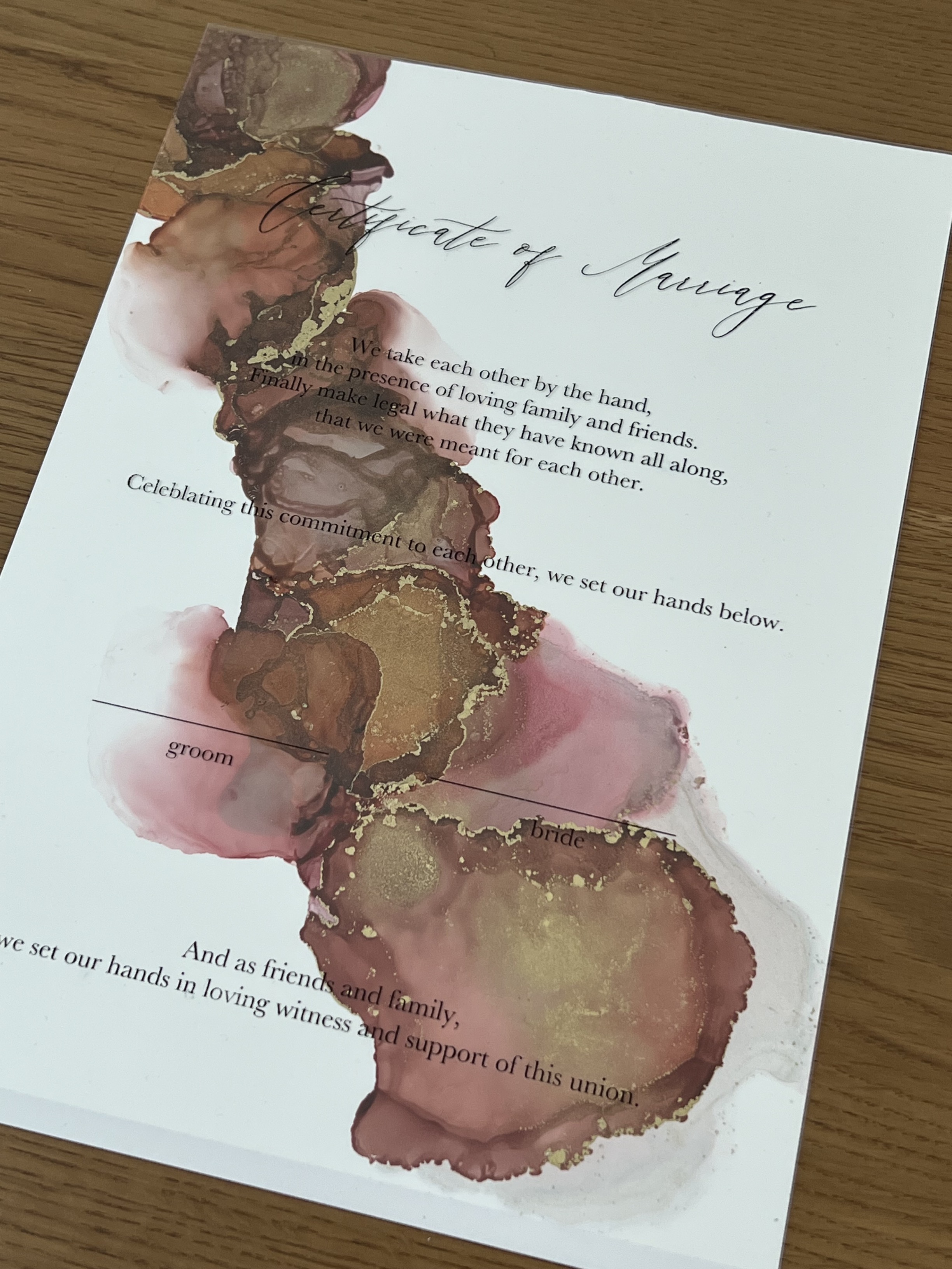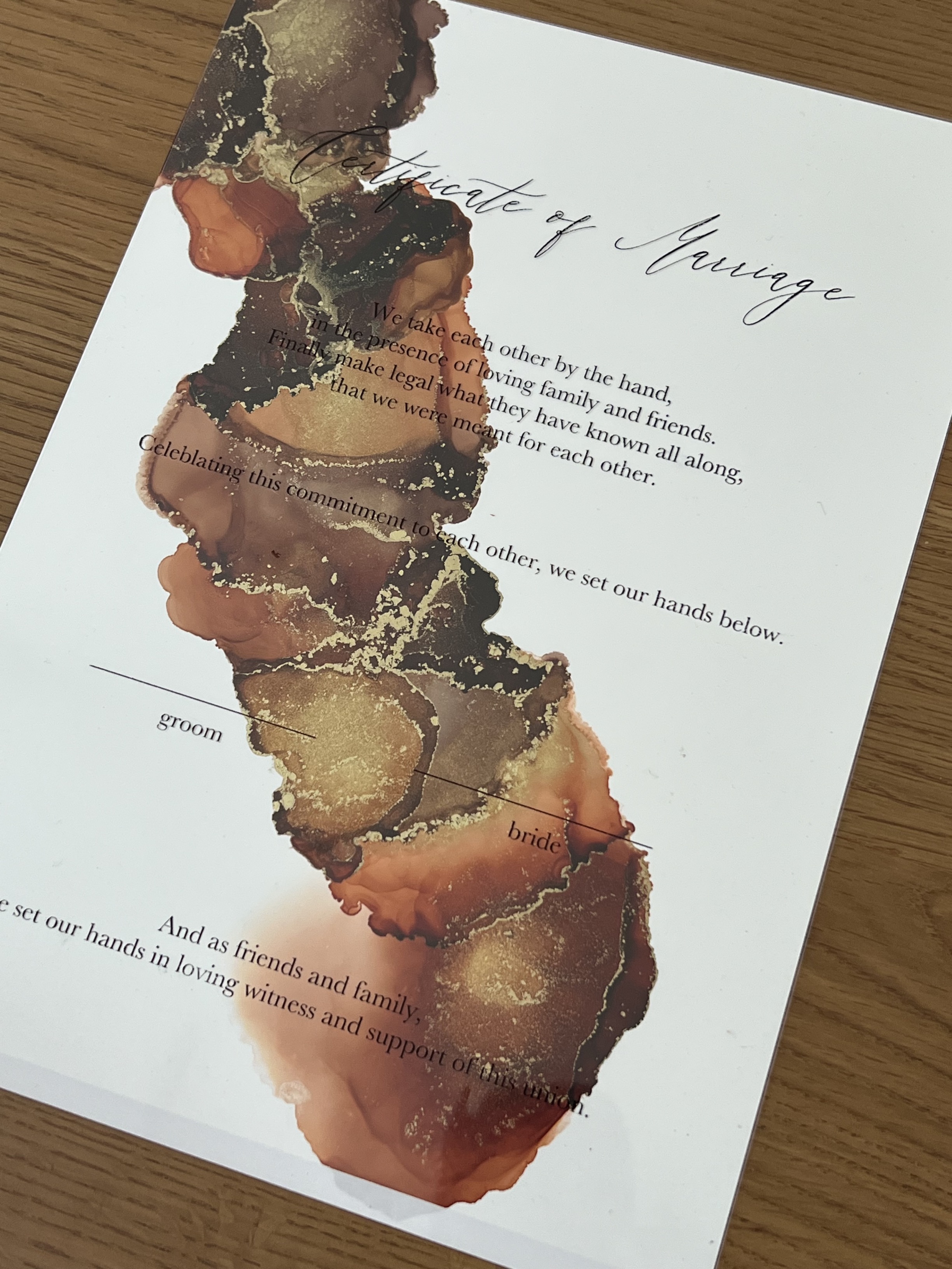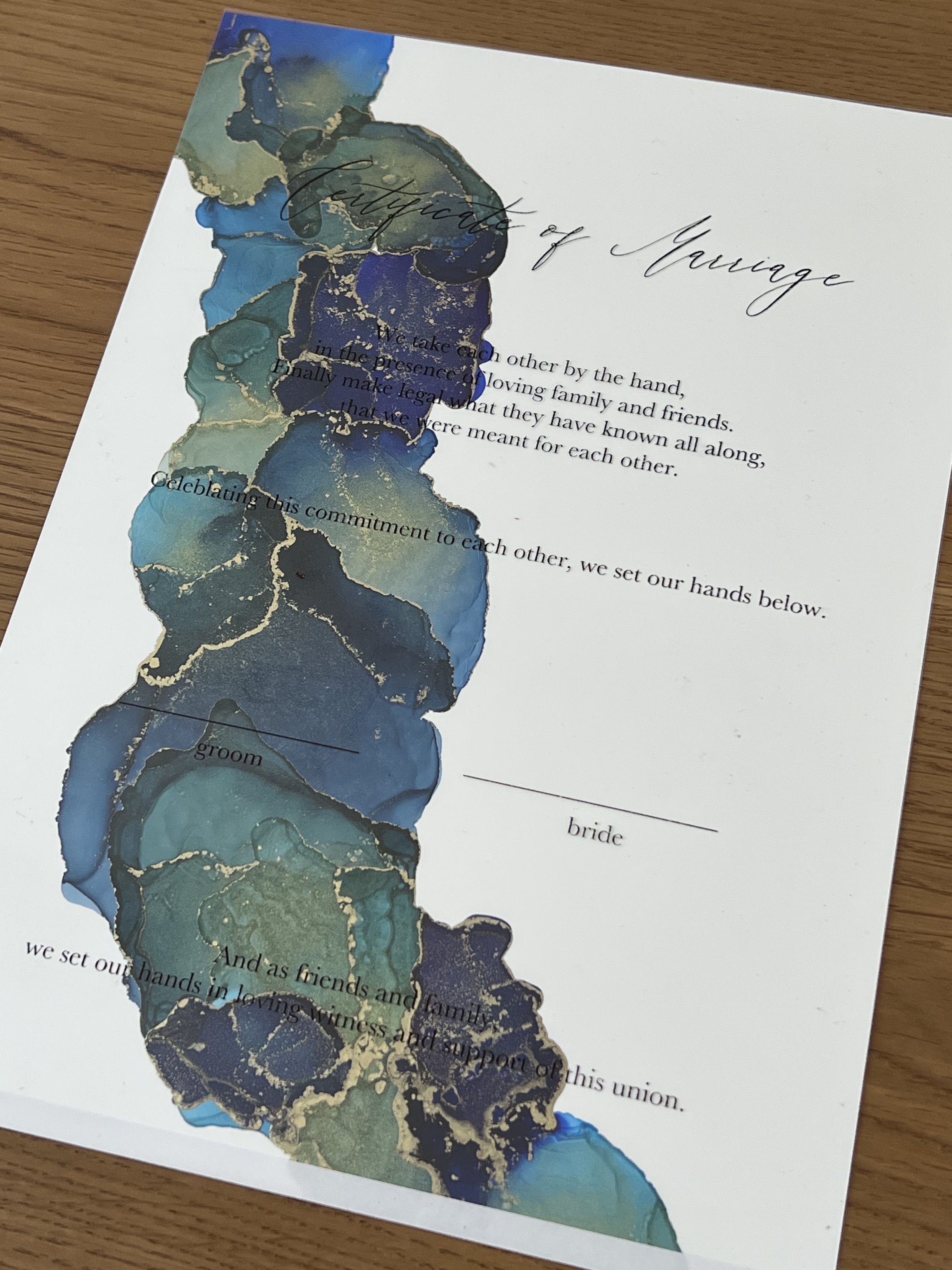 A one-of-a-kind wedding certificate.